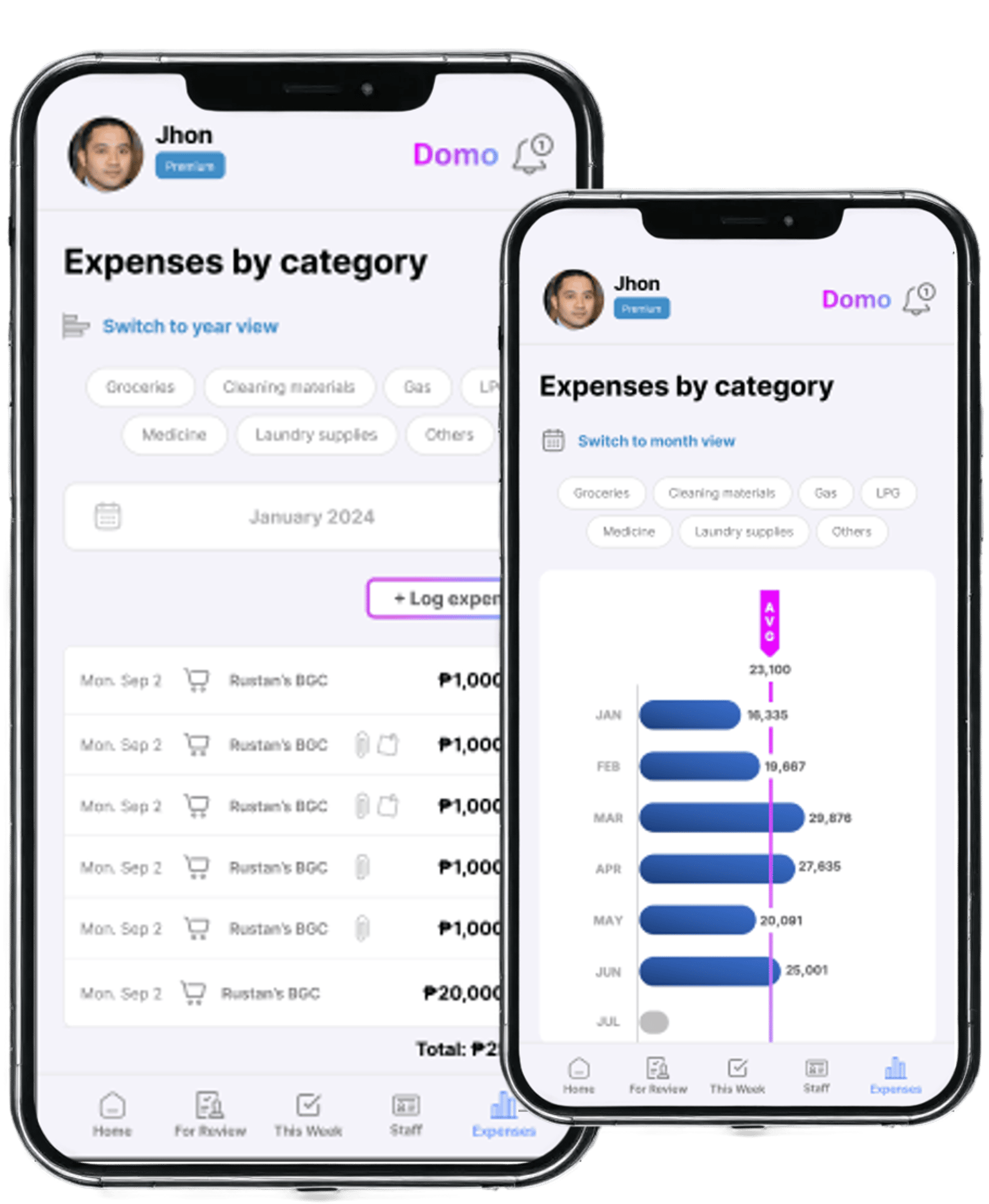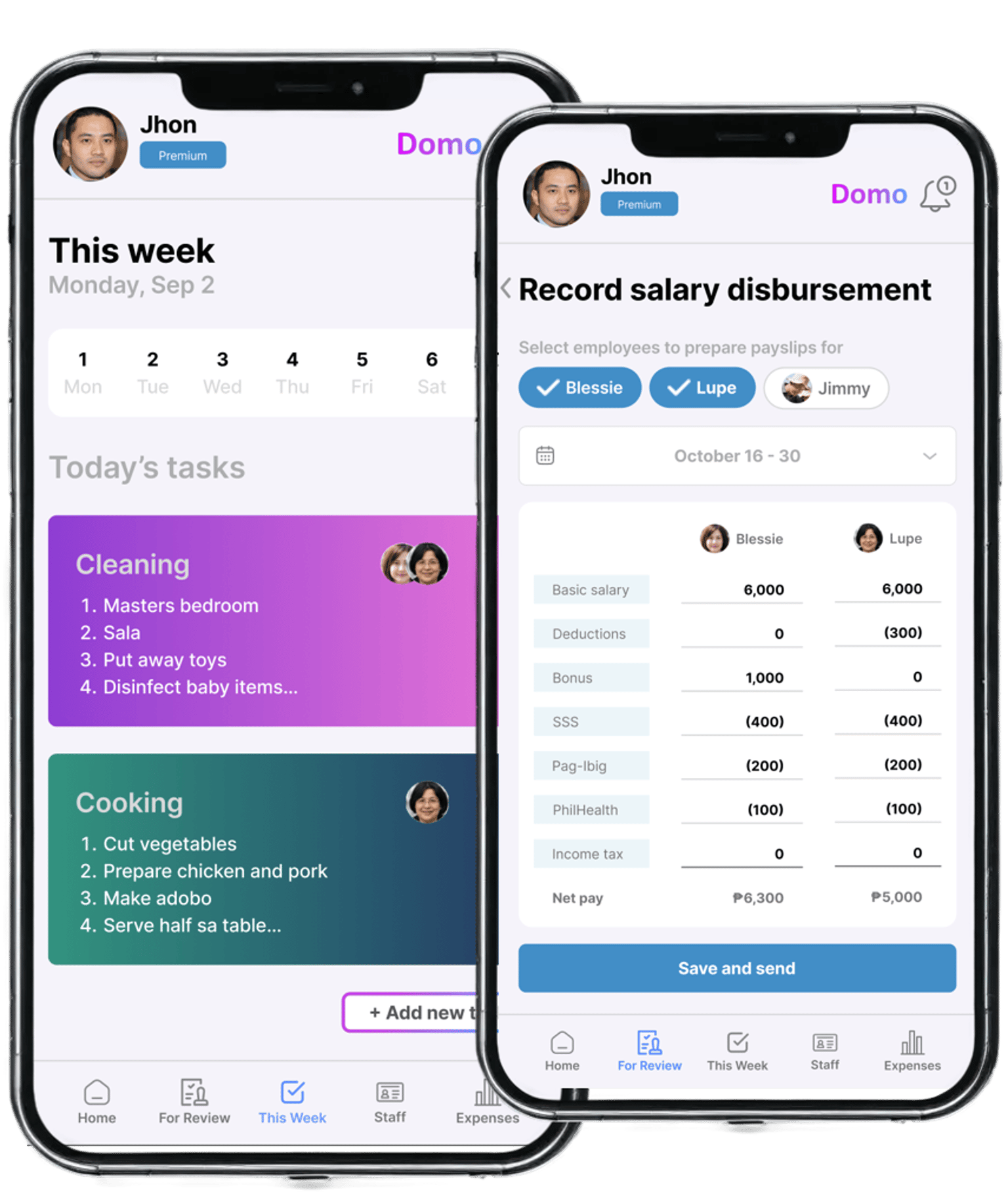 Without spending time inputting amounts yourself. Domo pieces it together for you across all staff. You can even choose to have certain bills automated.